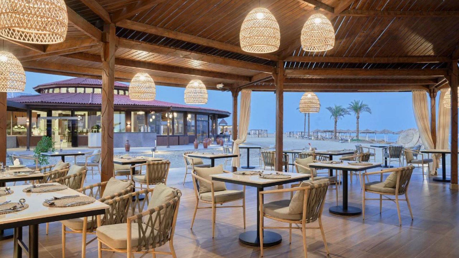 Il ristorante principale, recentemente rinnovato, con servizio a buffet per la colazione, il pranzo e la cena, offre cucina internazionale, piatti tipici locali, show cooking per la griglia e angolo della pasta a cura dello chef italiano. È inoltre possibile cenare presso la pizzeria con vista panoramica sul mare (2 cene a settimana incluse, prenotazione obbligatoria). Sono inoltre presenti tre bar: uno in spiaggia aperto dalle 10 al tramonto, uno in piscina ed uno nella lobby aperti dalle 10 alle 24. A pagamento: cena con menù di pesce presso la pizzeria (prenotazione obbligatoria), tenda beduina con shisha corner. Cenoni di Natale e Capodanno inclusi.