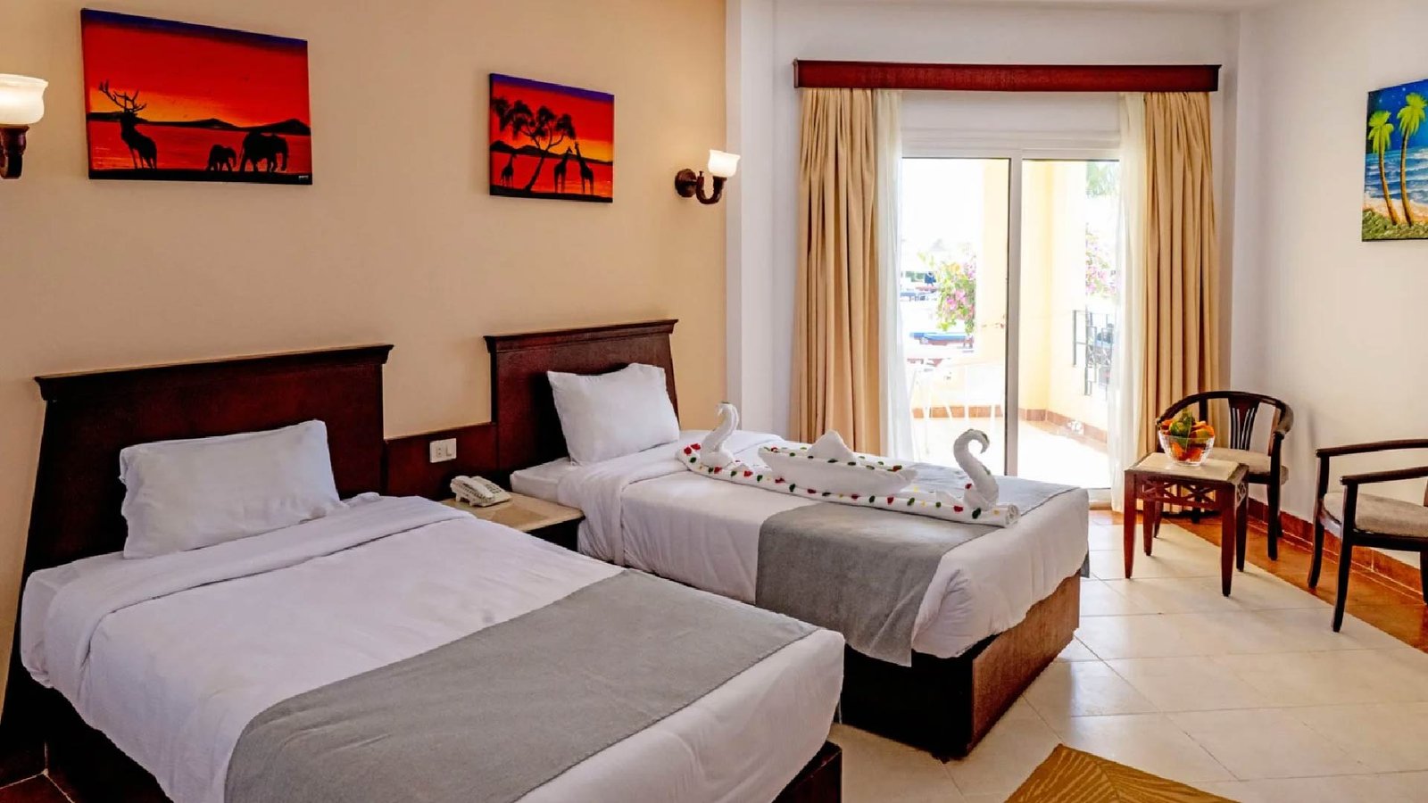 149 camere con vista giardino o vista mare, suddivise in doppie standard (max 3 adulti e 1 bambino o 2 adulti + 2 bambini) e family room con 2 ambienti separati e un unico bagno (max 4 adulti + 1 bambino). Sono inoltre disponibili, su richiesta, camere comunicanti con due bagni e occupazione massima di 6 persone. A partire da maggio 2026 saranno disponibili 20 camere di categoria superior rinnovate in uno stile moderno e funzionale. Tutte le sistemazioni sono dotate di servizi privati, asciugacapelli, aria condizionata, TV satellitare, telefono, balcone o terrazza, cassetta di sicurezza, minibar rifornito di una bottiglia d’acqua il giorno di arrivo, connessione Wi-Fi.
